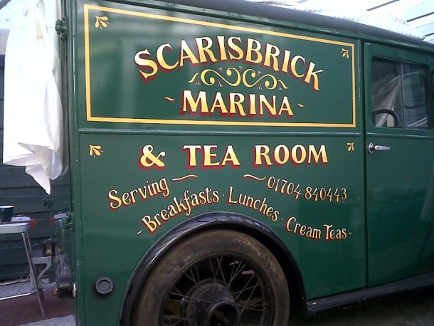 I am a self-taught signwriter. There are reportedly around 300 signwriters carrying on the age old tradition of signwriting throughout the UK. With brush and paint in hand we carry out our craft to the marvel of many an onlooker. Shops, churches, boats, pubs, to name but a few.